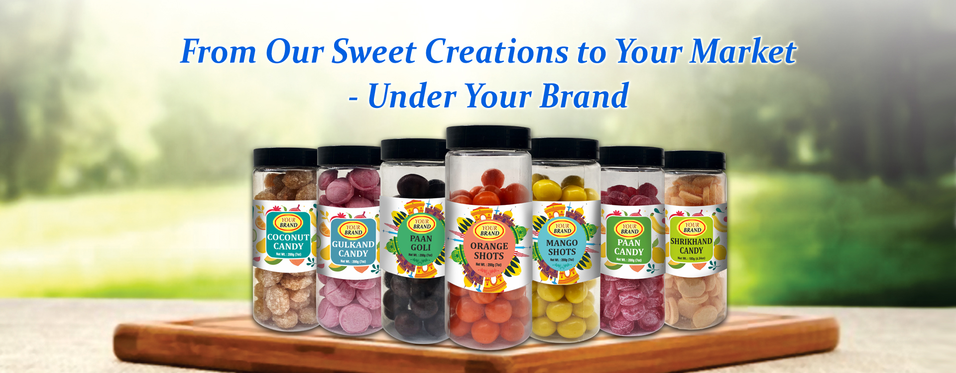 - Retail Pack: Transparent Plastic Pouches or Jars to allow consumers to see the colourful, distinctive candies inside. Typically, in 100g & 200g resealable pouches, plastic jars and glass jars.